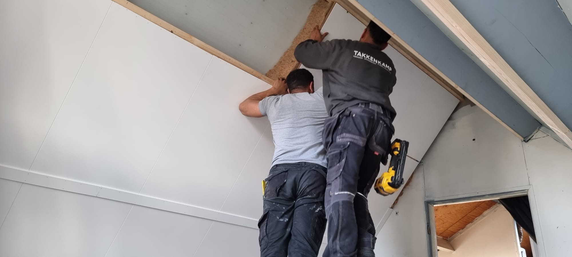 Bovendien is het materiaal volledig herbruikbaar en natuurlijk afbreekbaar, dus duurzaam. De ‘look’ van de onderplaat is vergelijkbaar met die van een gipsplaat. Behalve dat de zolders dus optimaal geïsoleerd zijn, worden ze ook weer voorzien van een prachtige afwerking aan de binnenzijde.