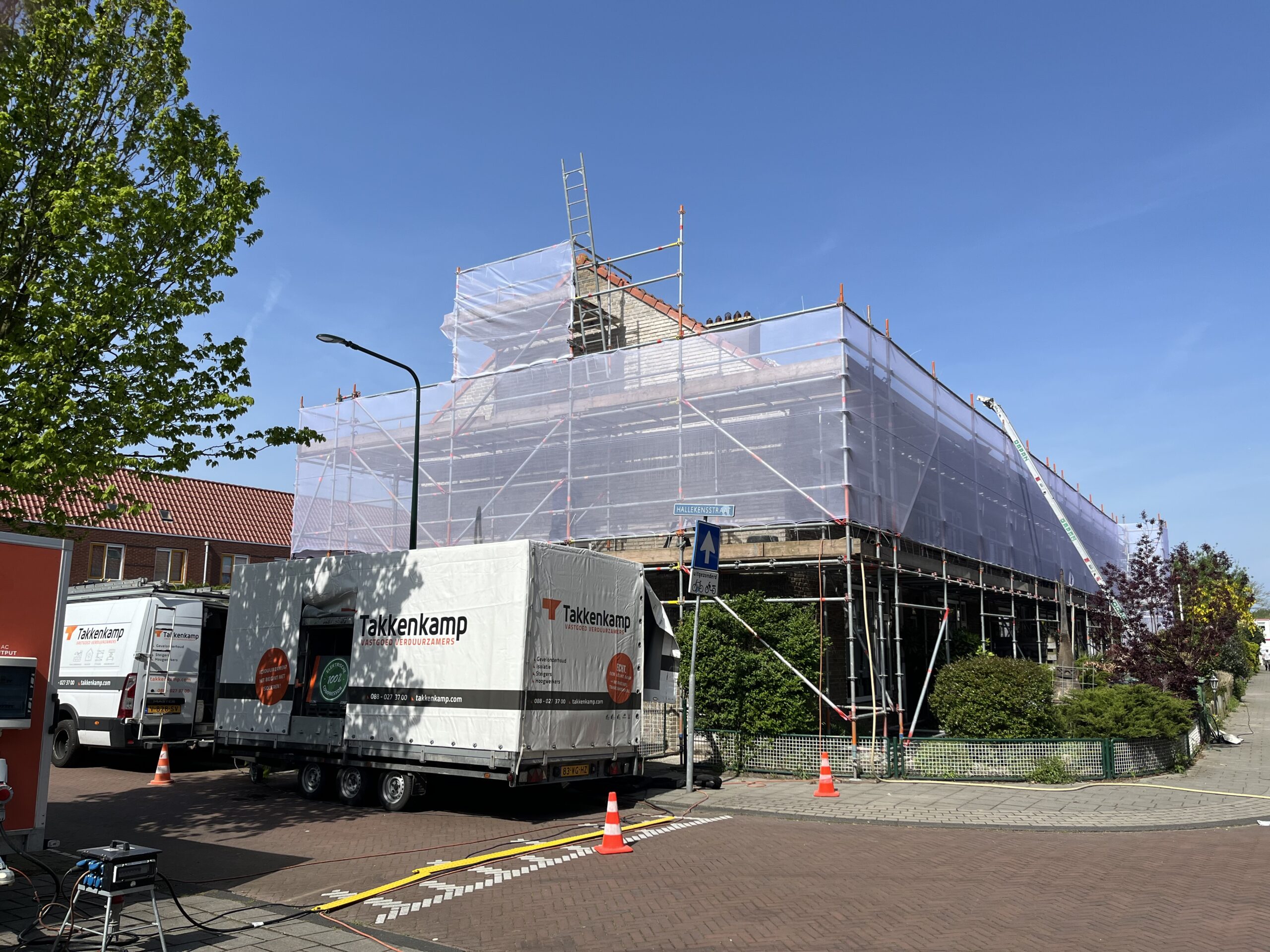Koedooder is verantwoordelijk voor de steigerbouw zodat de vakmannen van Imto Vastgoed Verduurzamers zich op een veilige manier kunnen bezighouden met de gevelwerkzaamheden. Takkenkamp Vastgoed Verduurzamers isoleert de spouwmuren van deze woningen met een geheel nieuw, volledig elektrisch, EPS-isolatie inblaassysteem. Hierdoor worden de isolatiewerkzaamheden helemaal stikstof neutraal uitgevoerd.