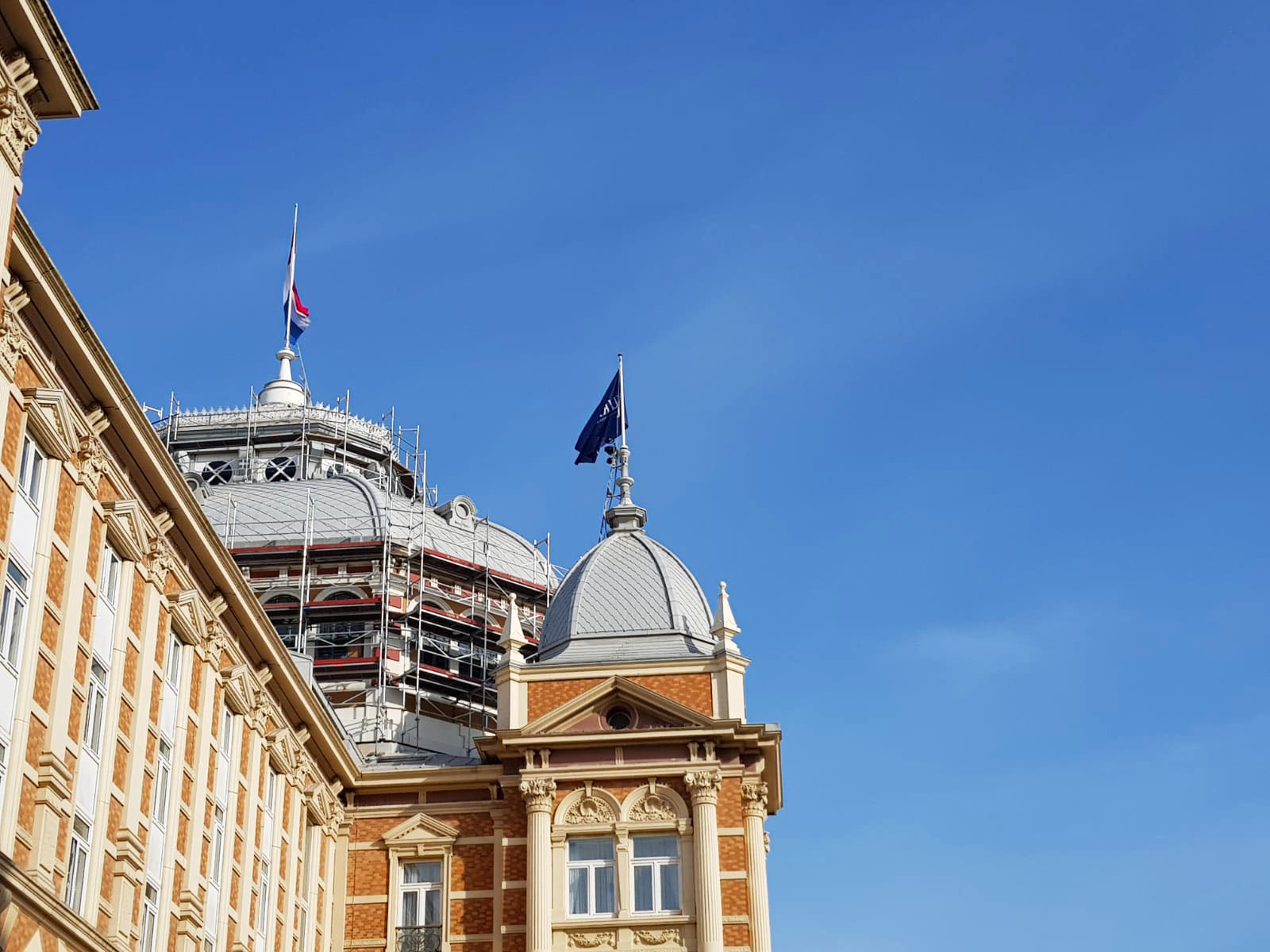 In opdracht en samenwerking met Palet schilderwerken zijn we (Van Milt Restaurateurs) gestart met het groot onderhoud van het Kurhaus in Scheveningen.