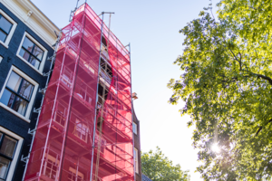 Voor een particuliere opdrachtgever mochten wij aan de slag bij een monumentale woning aan de Prinsengracht in Amsterdam. Omdat de woning op de UNESCO Werelderfgoed lijst staat, moesten vooraf voor alle werkzaamheden vergunningen aangevraagd worden. Het plaatsen van de steigers is vakkundig gedaan door onze collega’s van Koedooder. Dit was nog een flinke uitdaging omdat de woning geen eigen achtertuin heeft. Koedooder is hier creatief mee omgegaan zodat wij onze werkzaamheden veilig konden uitvoeren.