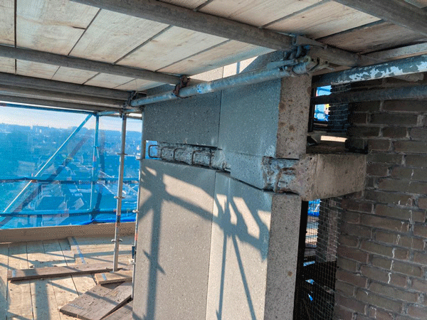 We hebben voor de uitvoering van dit project de toren volledig in de steigers gezet met onze eigen materialen en zijn vervolgens aan de slag gegaan met het uithakken en vervangen van het voegwerk, scheurherstel, metselwerk- en beton(rot) reparaties. Deze mooie klus is dus inmiddels afgerond!